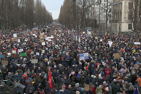 Angesichts der Correctiv-Recherche über ein Treffen Rechtsextremer, auf dem mutmaßlich Deportationspläne für Millionen Menschen diskutiert worden waren, entwickelte sich aus der deutschen Zivilgesellschaft heraus Anfang 2024 eine historische Protestwelle. Die Demonstration „Gemeinsam gegen Rechts – für Demokratie und Vielfalt“ in München mobilisierte mit über 260 unterstützenden Organisationen eine breite Trägerschaft. Aufgrund von Überfüllung des Veranstaltungsortes musste die Demonstration bereits nach 45 Minuten abgebrochen werden.